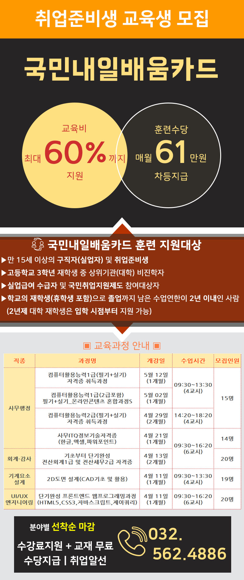 [2022년 4, 5월] 실업자훈련과정 개강일정