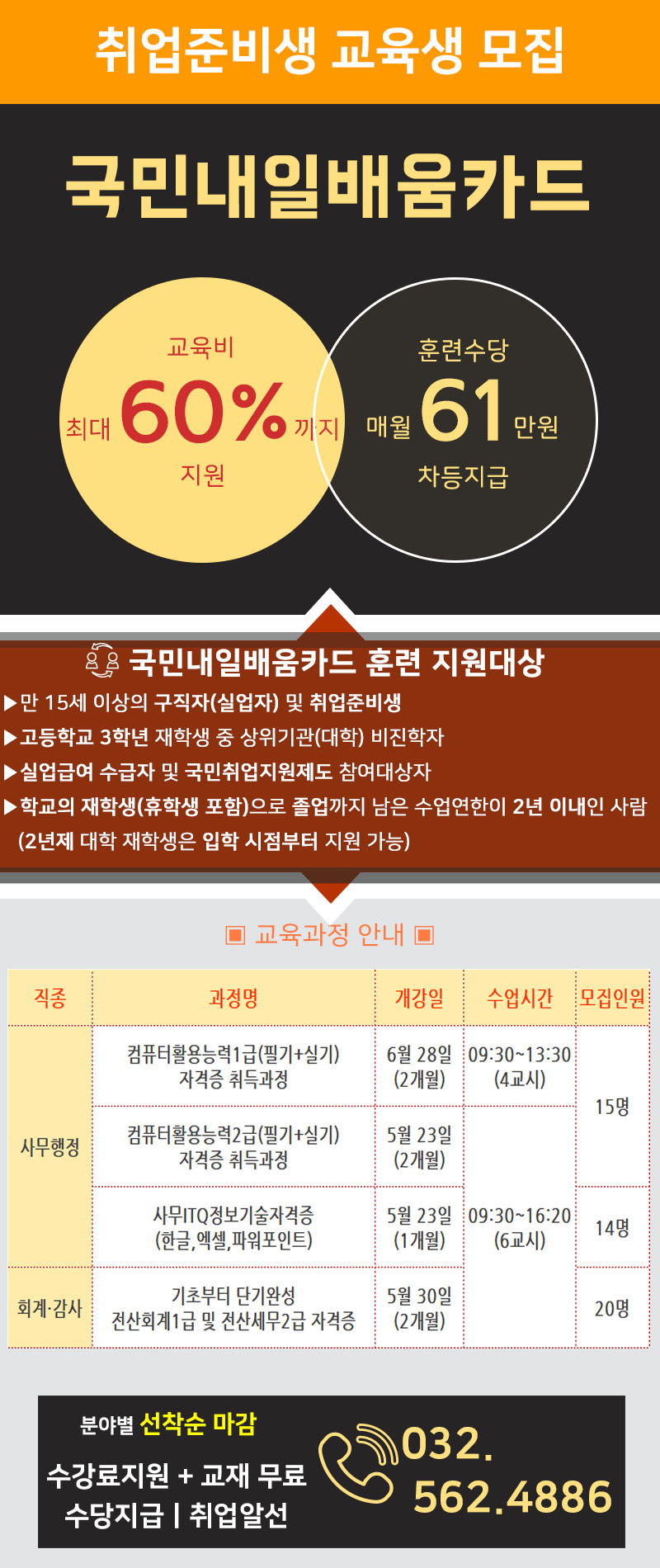 [2022년 5, 6월] 실업자훈련과정 개강일정