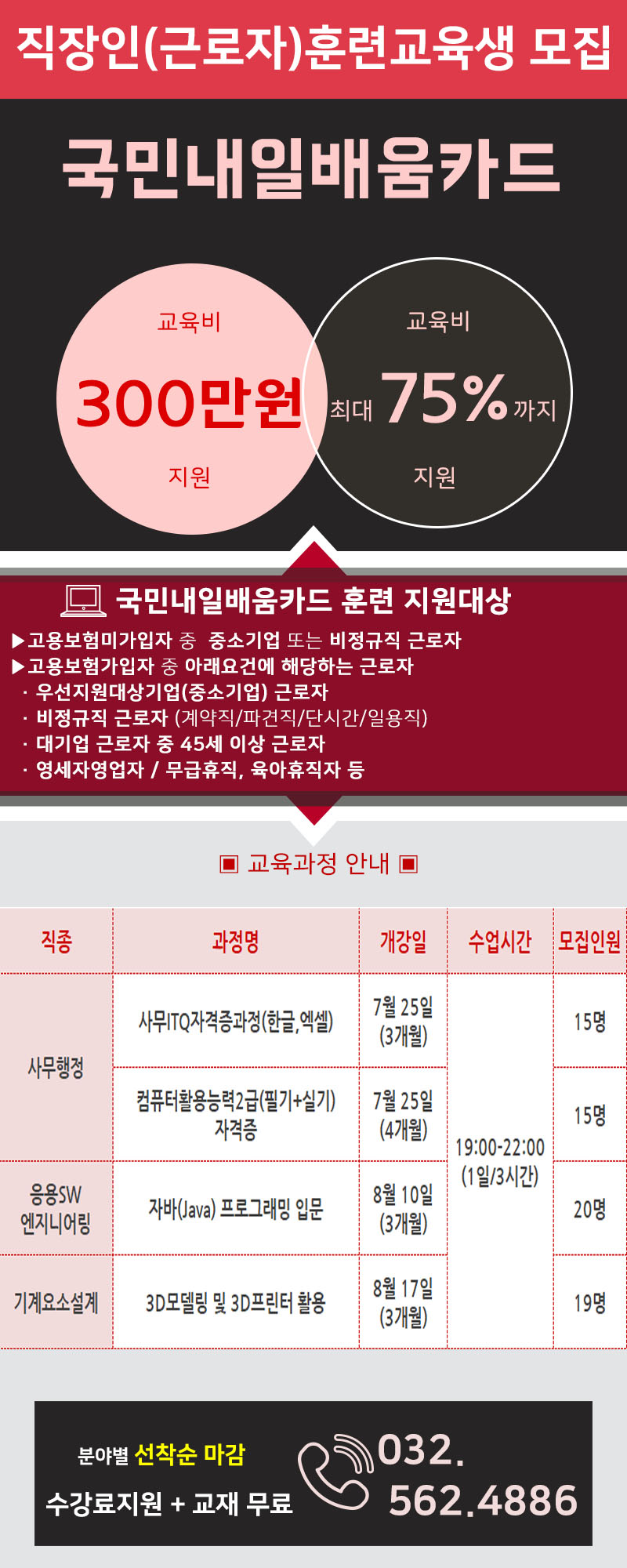 [2022년 7, 8월] 직장인(근로자)훈련과정 개강일정