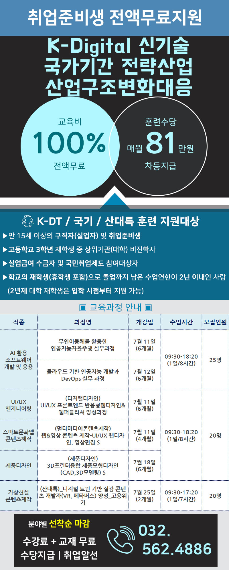 : [2022년 7월, 8월] 실업자훈련과정(K-Digital/국가기간 전략산업직종/산업구조변화대응)개강일정