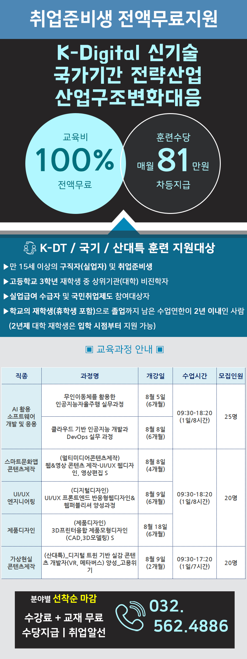 : [2022년 7, 8월] 직장인(근로자)훈련과정 개강일정