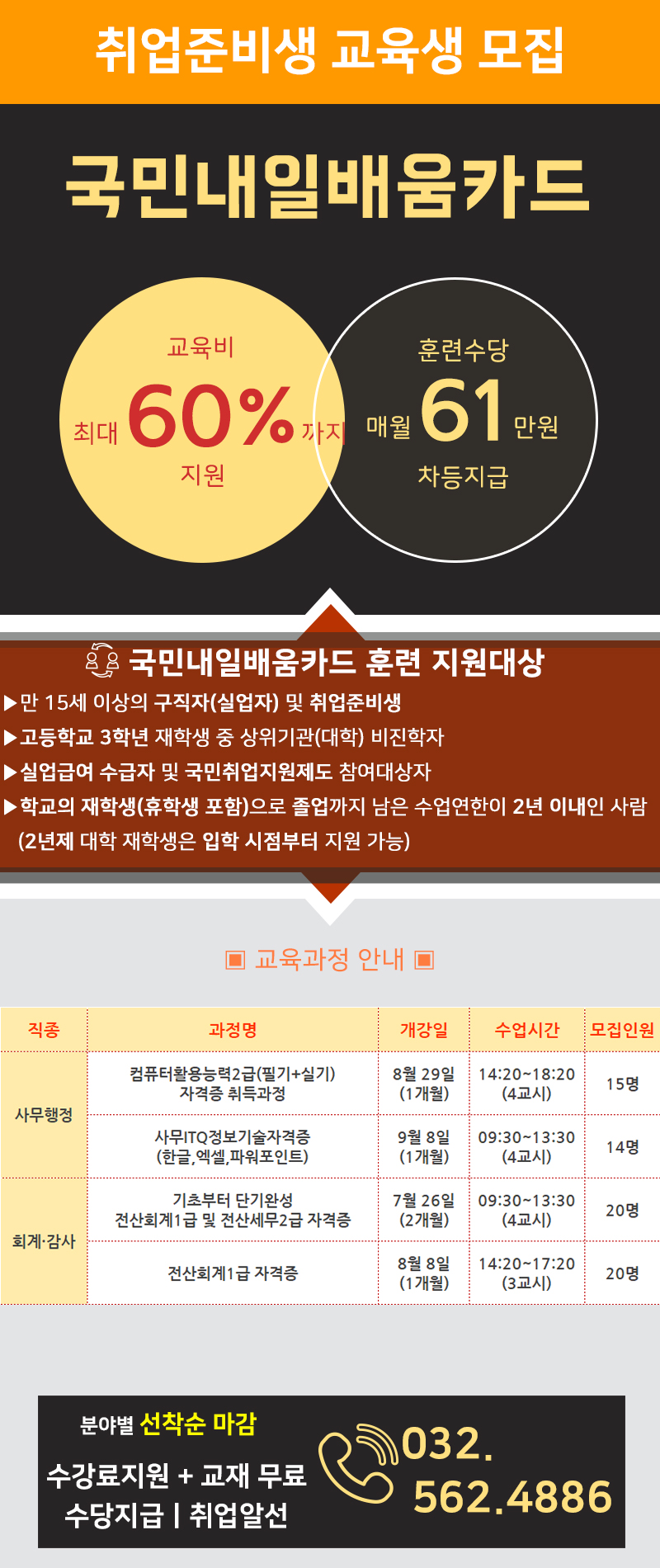 : [2022년 8월, 9월] 직장인(근로자)훈련과정 개강일정