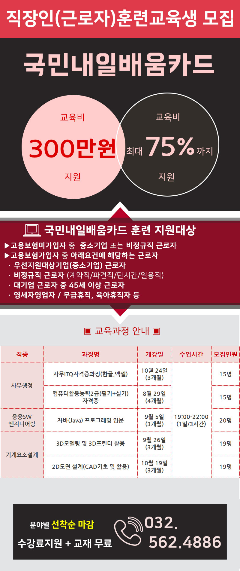 [2022년 8월, 9월] 직장인(근로자)훈련과정 개강일정