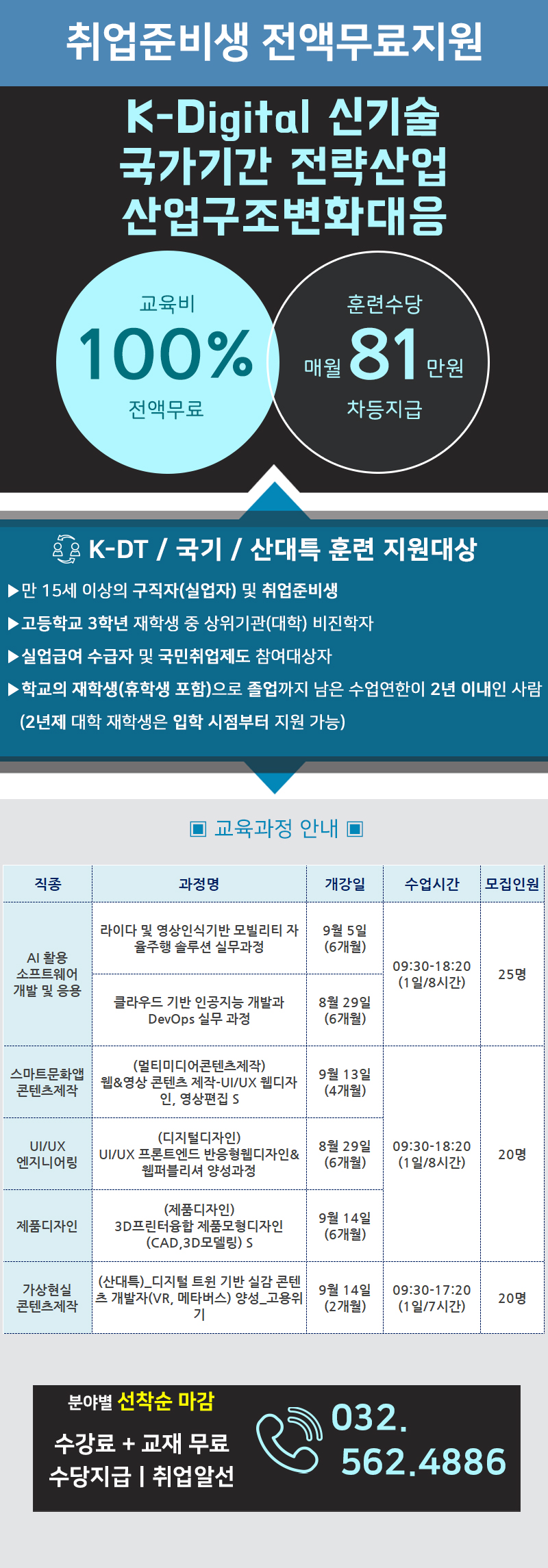 [2022년 8월, 9월] 실업자훈련과정(K-Digital/국가기간 전략산업직종/산업구조변화대응)개강일정