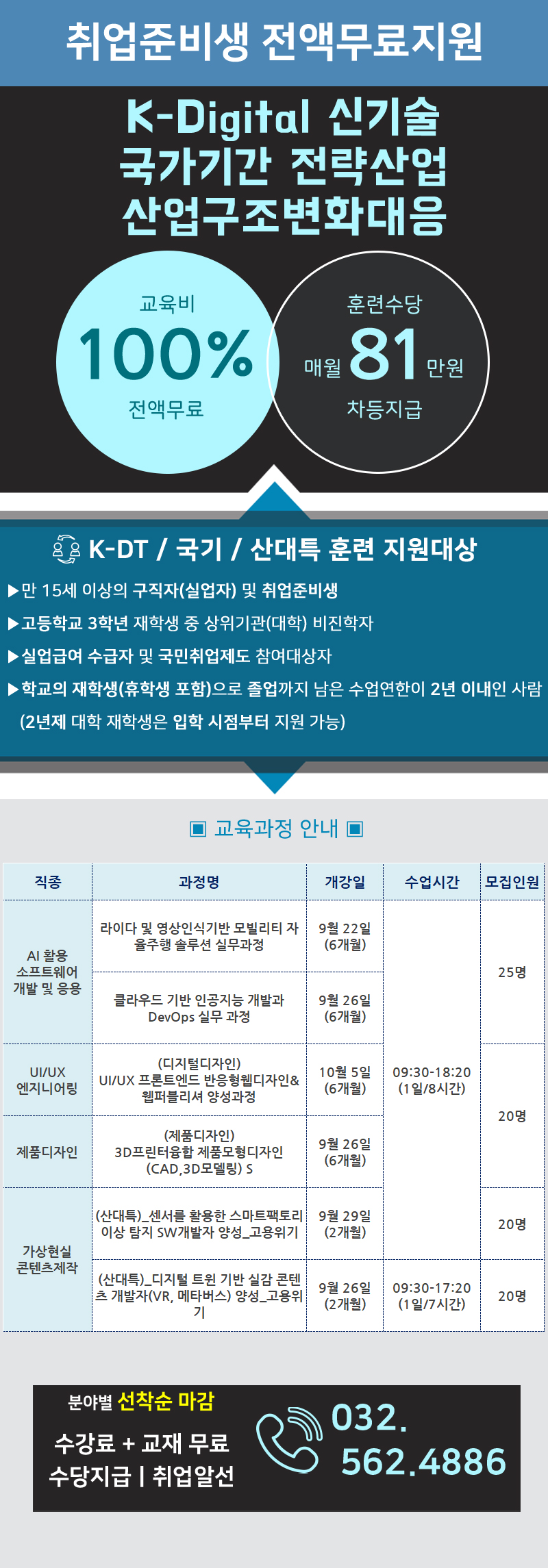 : [2022년 8월, 9월] 실업자훈련과정(K-Digital/국가기간 전략산업직종/산업구조변화대응)개강일정
