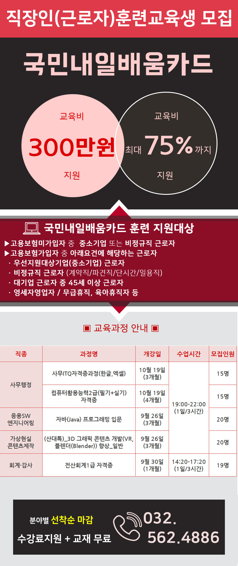 [2022년 9월, 10월] 직장인(근로자)훈련과정 개강일정