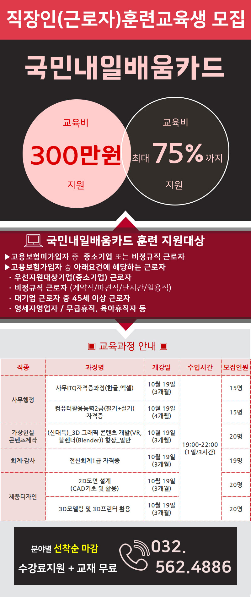 [2022년 10월] 직장인(근로자)훈련과정 개강일정