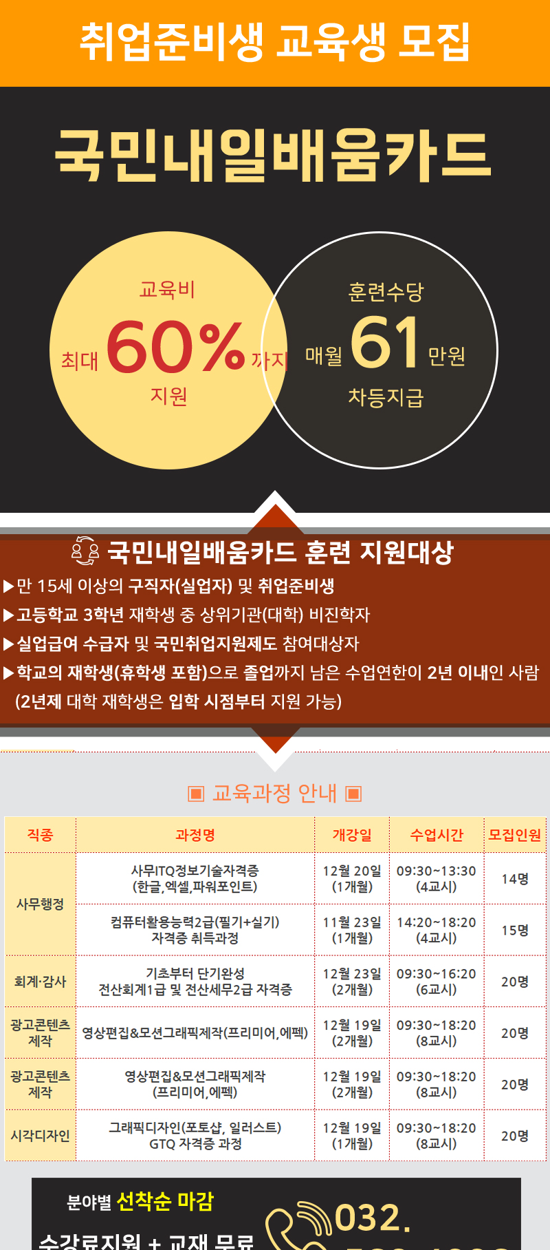 : [2022년 11월, 12월] 직장인(근로자)훈련과정 개강일정