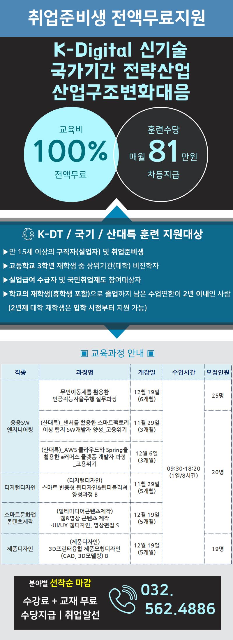 : [2022년 12월] 실업자훈련과정(K-Digital/국가기간 전략산업직종/산업구조변화대응)개강일정