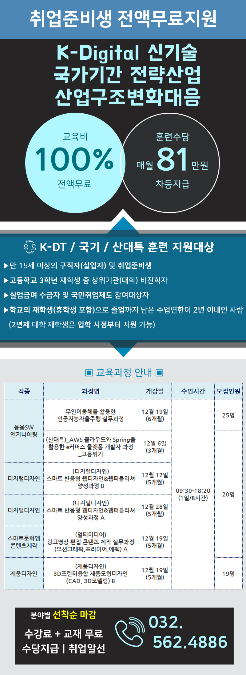 : [2022년 11월, 12월] 실업자훈련과정(K-Digital/국가기간 전략산업직종/산업구조변화대응)개강일정